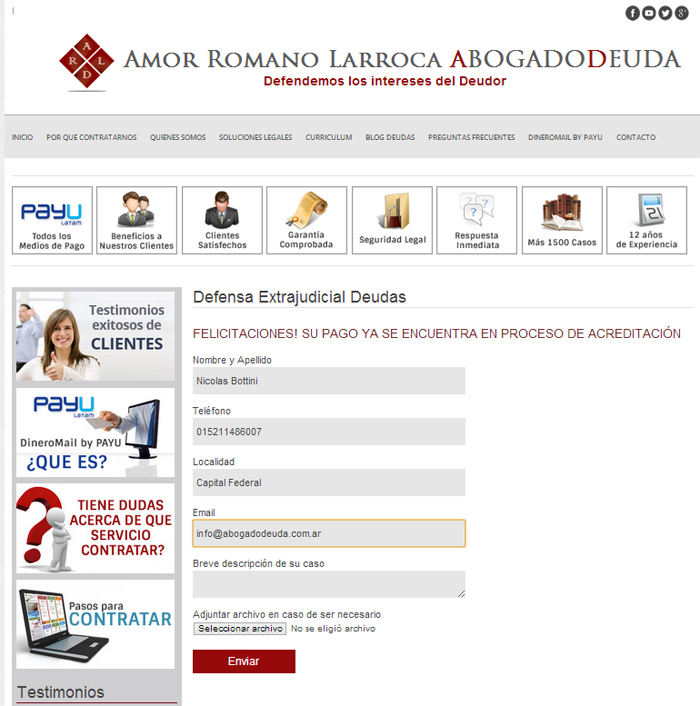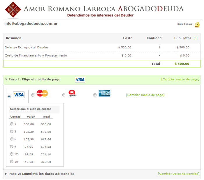 Una vez impreso el Ticket de Pago o bien efectuado el pago con el medio de pago seleccionado, usted será redirigido nuevamente al sitio Web de AbogadoDeuda.com.ar para que complete un formulario con sus datos de contacto y acto seguido, ponernos en Acción cuanto antes para solucionar su Problema de Deuda!