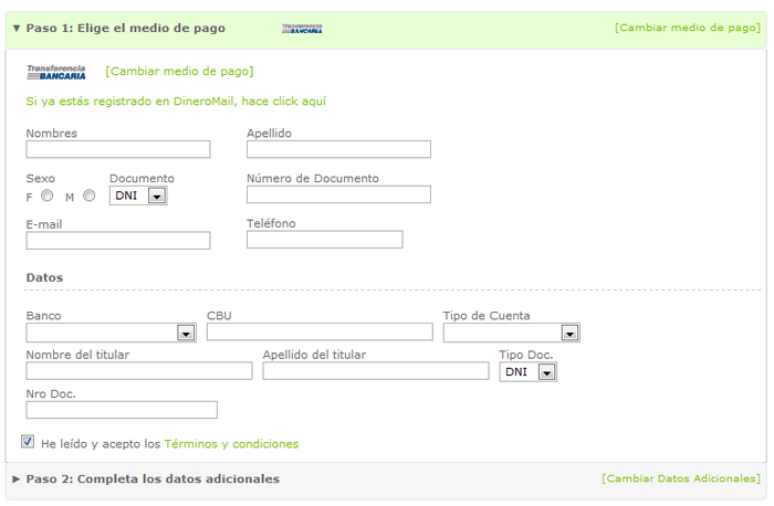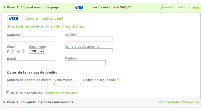 DineroMail - Complete el formulario de pago con sus datos.